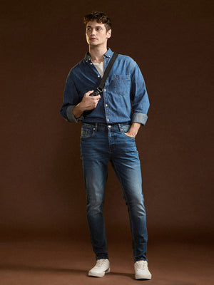 Men Mid Blue Mid-Rise Elasticated Waist Jeans