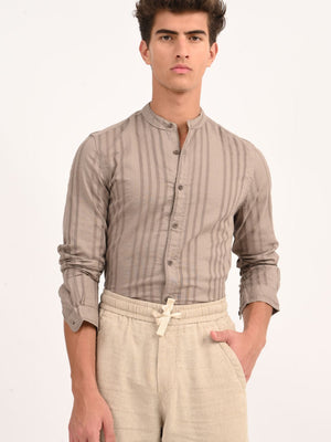 Men Olive Linen Blend Loose Fit Drawcord Trousers