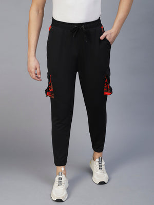Men Black Camo Print Pocket Detail Poly Corduroy Jogger