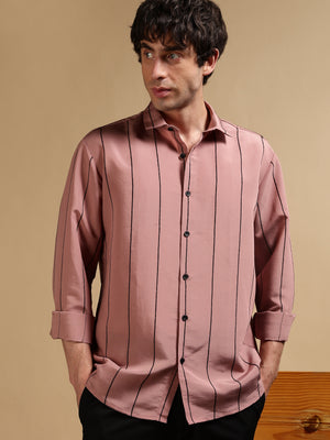 Men Pink Nylon Slim Fit Striped Shirt