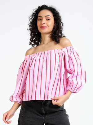 Women Pink Off Shoulder Top