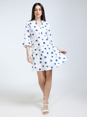 Women White Heart Printed Dress