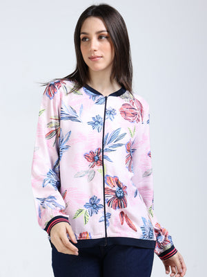 Women Pink Printed Relaxed Jacket