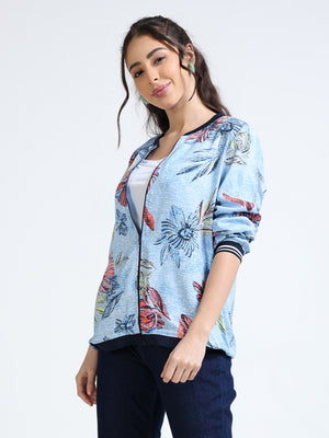 Women Blue Printed Relaxed Jacket
