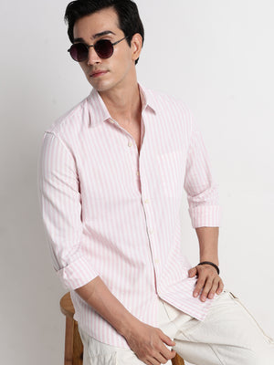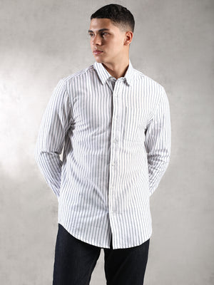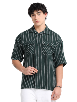 Men Striped Short Sleeve Casual Drop Shoulder Shirt