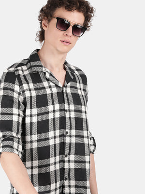 Men Black Slim Fit Lapel Collar Full Sleeve Casual Shirt