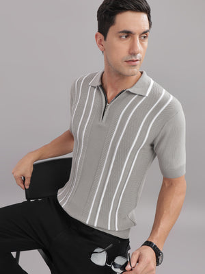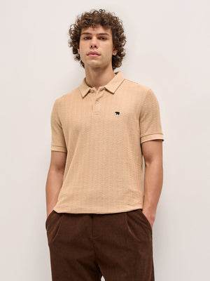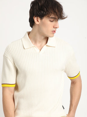 Men Cream Knitted Regular Fit Polo Collar T-shirt