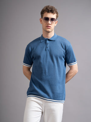 Men Eldor Blue Knit Polo T-Shirt