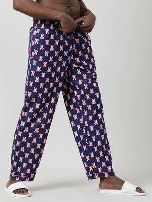 Men Oversized Navy Cotton Checkered Knit Lounge Pants