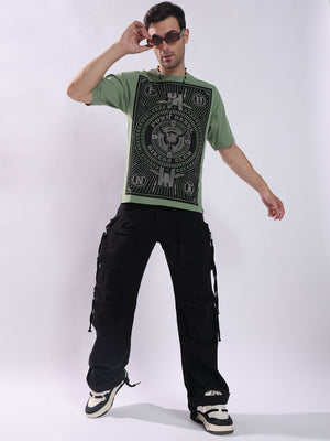 Men Olive Cotton Oversized T-Shirt