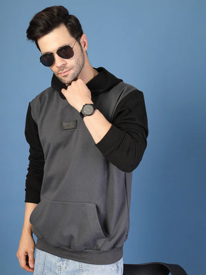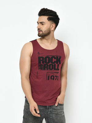 Men Dark Grey Placement Print With Curved Bottom Sleeveless T-Shirt Vest