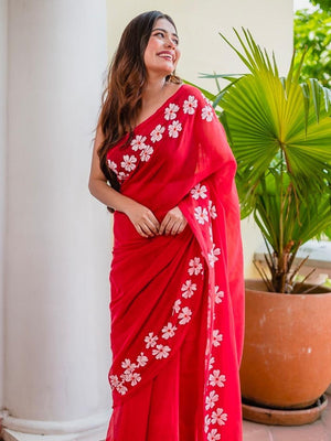 Women Red Plain Cotton Saree