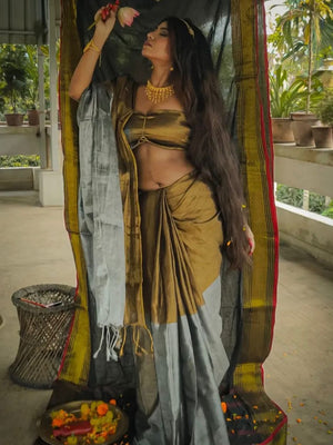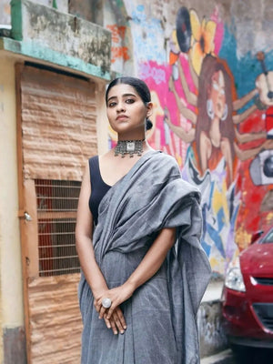 Women Grey Solid Pure Cotton Saree