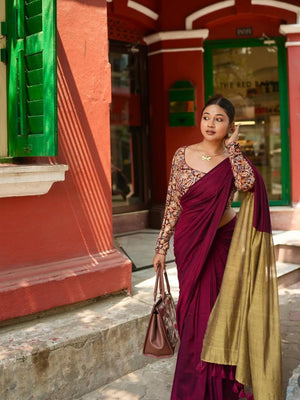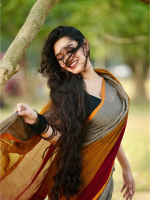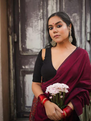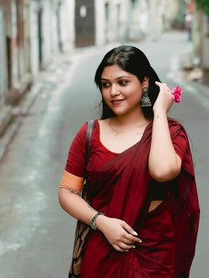 Women Cotton Maron Saree