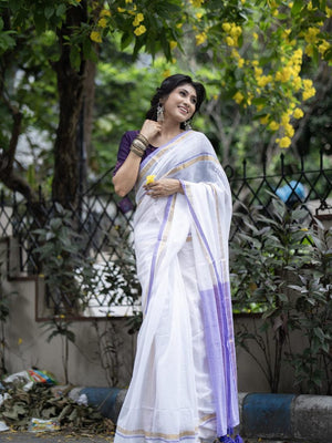 Women White Mul Cotton Zari Border Saree