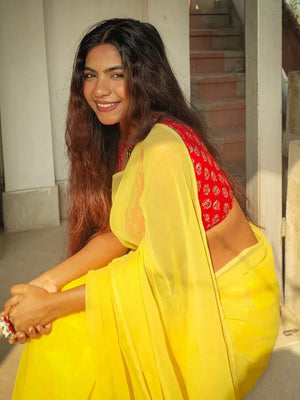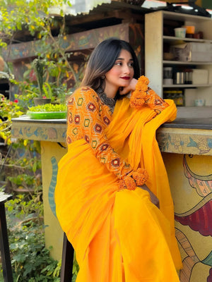 Women Yellow Solid Cotton Saree