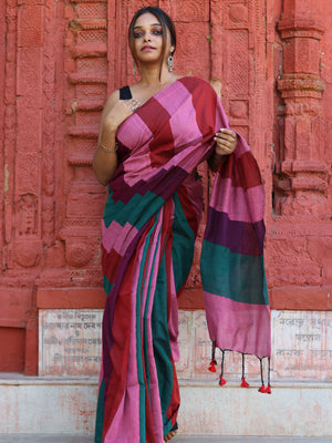Women Maroon Cotton Handloom Saree