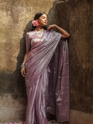 Lilac Lily Pastel Purple Handloom Tissue Saree