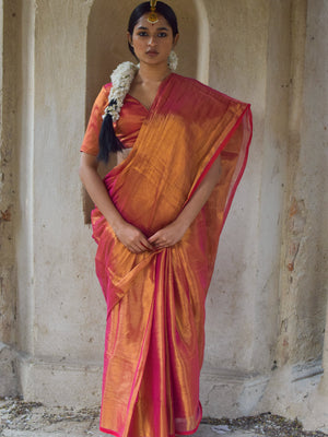 Chandi Aur Tamba Silver And Copper Handloom Tissue Saree