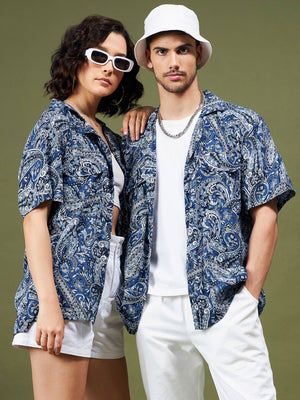 Unisex Navy Paisley Relax Fit Shirt