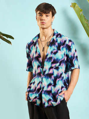 Men Blue Abstract Print Relax Fit Shirt