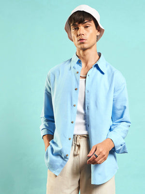 Men Blue Linen Flex Relax Fit Shirt