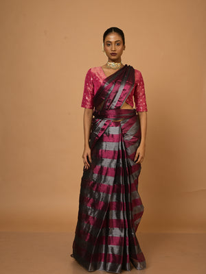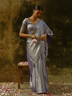 Abhilasha Silver and Purple Striped Handloom Tissue Saree