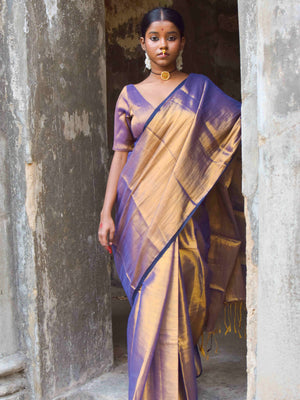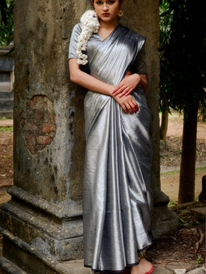 Chandi Aur Tamba Silver And Copper Handloom Tissue Saree