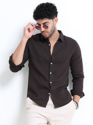 Men Brown Double Cloth Shirt