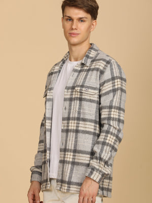 Men Darren Brushed Check Overshirt Grey