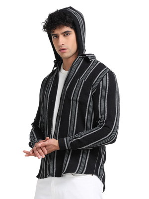 Men Striped Long Sleeve Hooded Casual Shirt