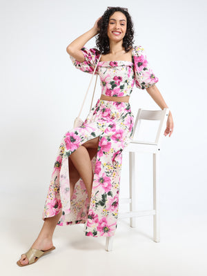 Women Floral Side Slit Co-Ord Set