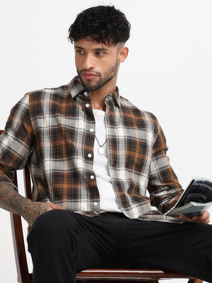 Men Brown Multi Check Shirt