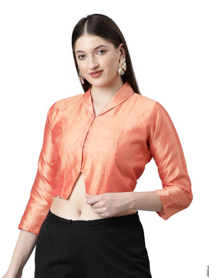 Orange Solid Three-Quarter Sleeves Mandarin Collar Dupion Silk Knot Blouse