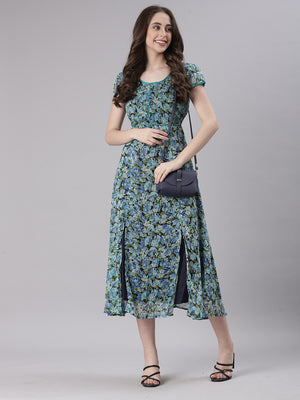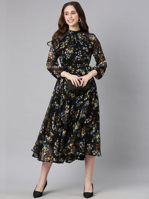 Women Black Bandhani Printed Ethnic Fit & Flare Dress