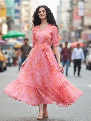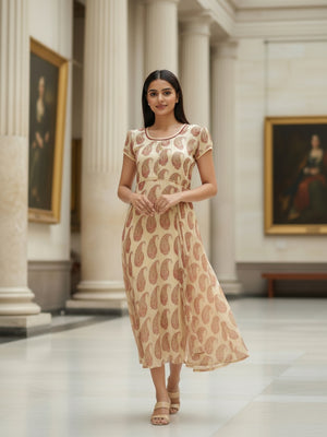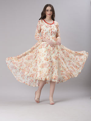 Women Cream Abstract Print Fit & Flare Midi Dress