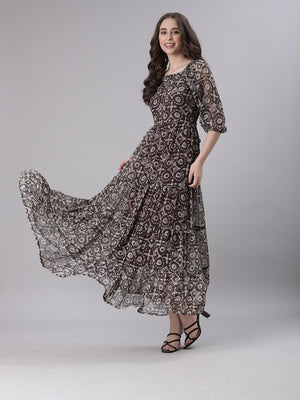Women Black Bandhani Printed Ethnic Fit & Flare Dress