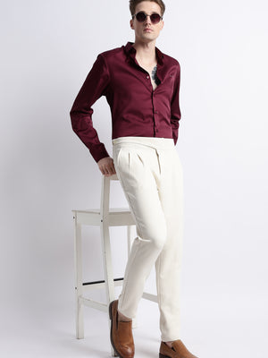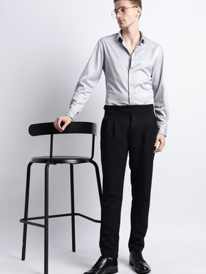 Men Light Grey Solid 4 Way Stretch Formal Trouser
