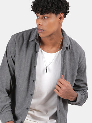 Men Grey Slim Fit Spread Collar Full Sleeve Casual Shirt