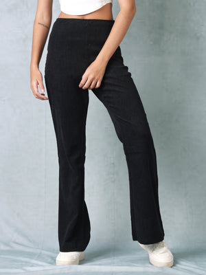 Women Black Corduroy Bootcut Trouser