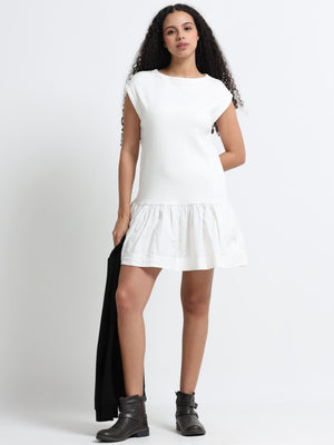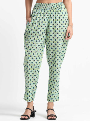 Women Pistachio Green Printed Fit & Flare dress with waist cut out