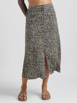 Women Grey Floral Printed Straight Fit Skirt