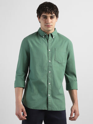 Men Green Regular Fit Spread Collar Shirt