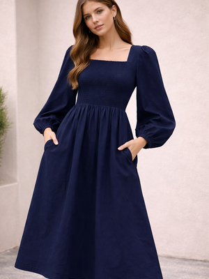 Women Blue Cotton Midi Dress