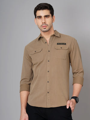 Men Brown Cotton Slim Shirt
