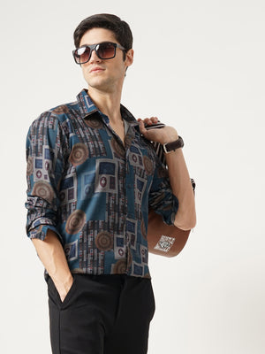 Men Blue Cotton Slim Shirt