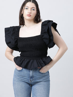 Women Yellow Mesh Peplum Top