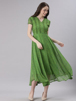 Women Cream Abstract Print Fit & Flare Midi Dress
