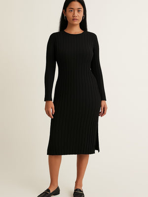 Women Acrylic Black Ribbed Knit Bodycon Midi Dress
