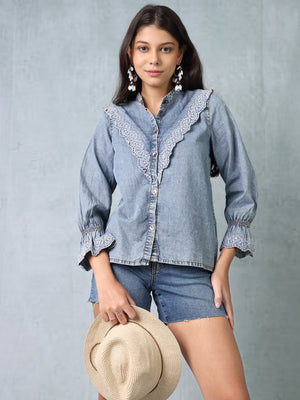 Women Denim Shirt with Embroidery
